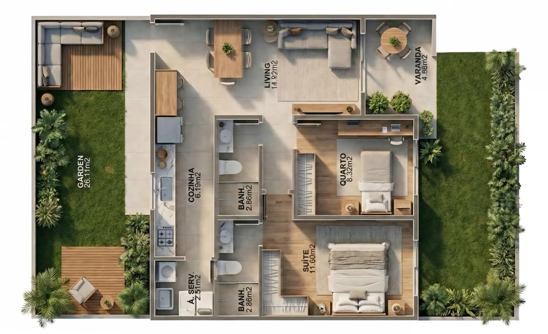 Apartamentos 2 quartos com unidades a partir de R$659 mil.